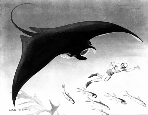 The Sea Around Us (1953) Published March 30, 2020 at 500 × 391 in Rachel Carson vs. Irwin Allen A storyboard illustration from the 1953 documentary The Sea Around Us, produced and directed by Irwin Allen.