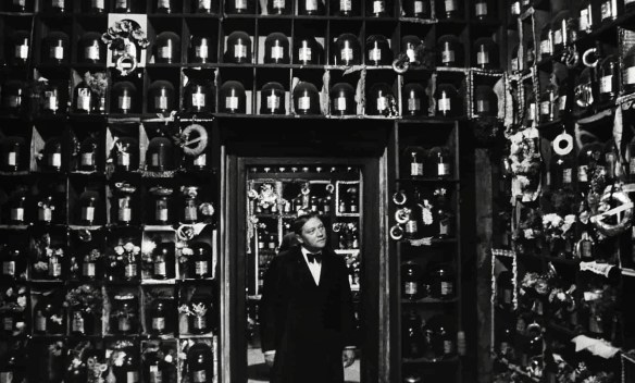 Karl (Rudolf Hrusinsky) admires a roomful of urns containing the ashes of loved ones in The Cremator (1969).