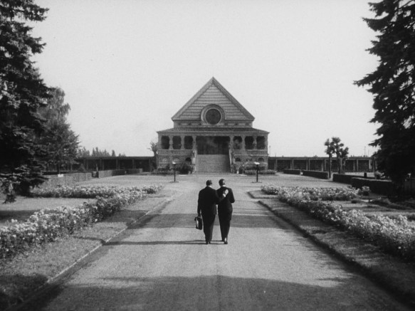 Karl (Rudolf Hruskinsky) has plans for his wife Lakme (Vlasta Chramostova) that she may suspect but dare not question in The Cremator (1969), a Czech black comedy.