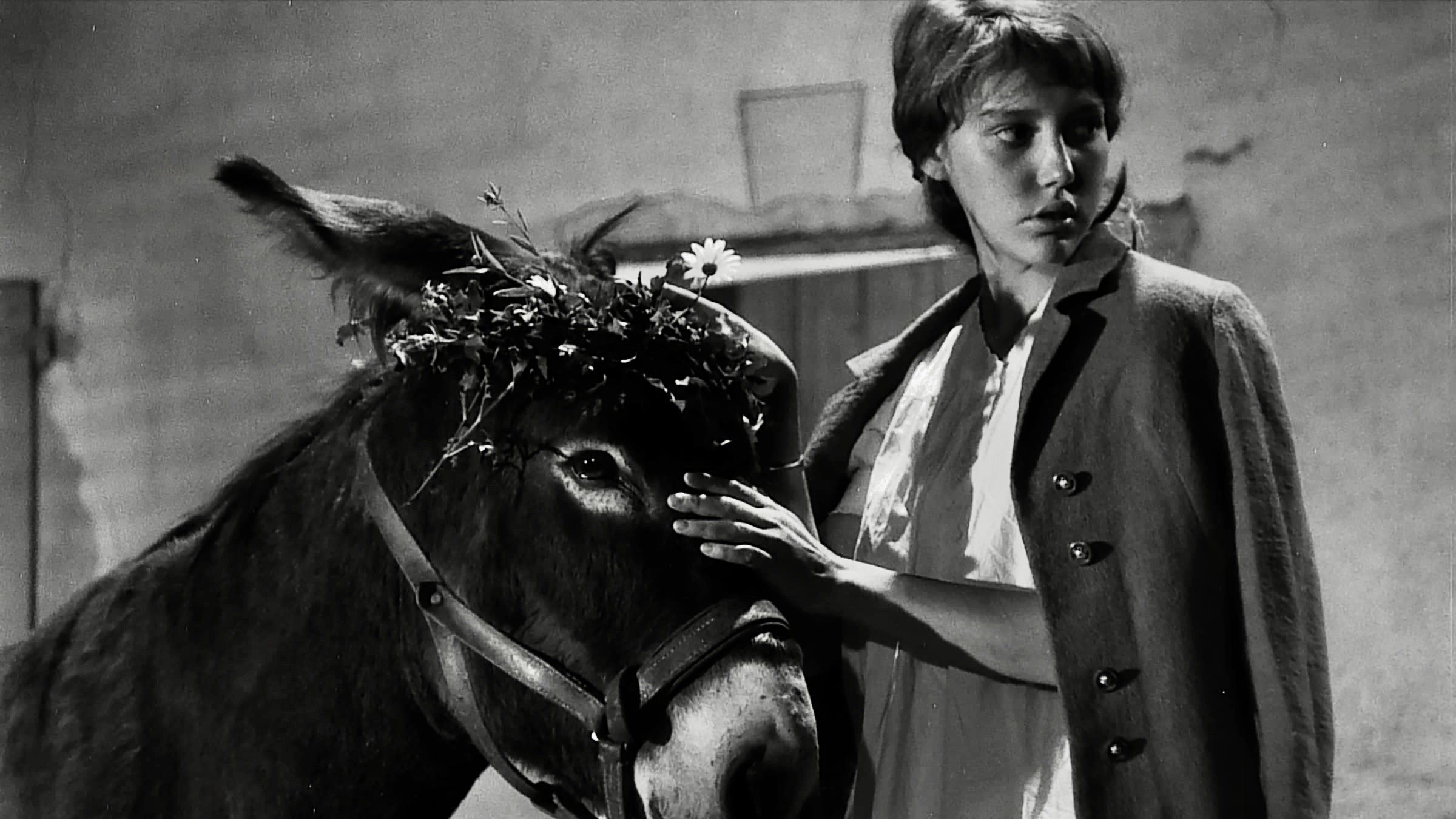 Au Hasard Balthazar (1966) Published May 4, 2020 at 2400 × 1350 in The Holy Bray The donkey experiences a brief moment of tenderness from Marie (Anne Wiazemsky) in Au Hasard Balthazar (1966), directed by Robert Bresson.
