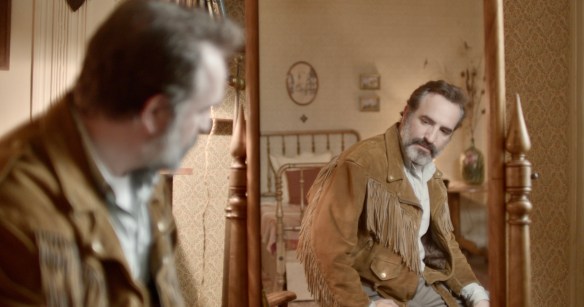 Georges (Jean Dujardin) admiring his reflection in DEERSKIN (2019) – Courtesy of Greenwich Entertainment
