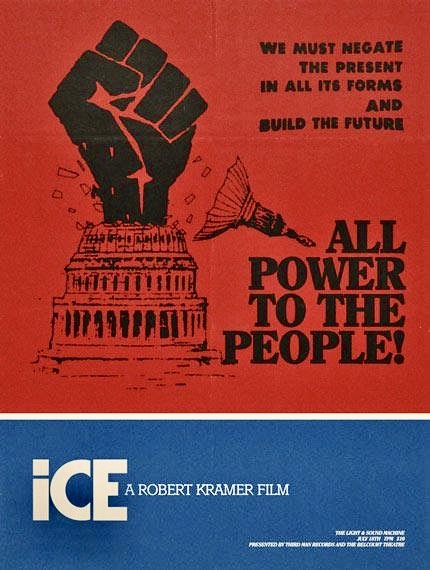 Kramer’s big breakthrough film, Ice (1970), about a revolutionary movement in the near future, was considered a pioneering work that blended fiction and documentary filmmaking in powerful ways. Jonas Mekas called it “the most original and most significant American narrative film of the late sixties.” Despite the incendiary nature of the film, Ice actually received theatrical distribution in some cities while Kramer’s earlier work remained obscure and hard to see.