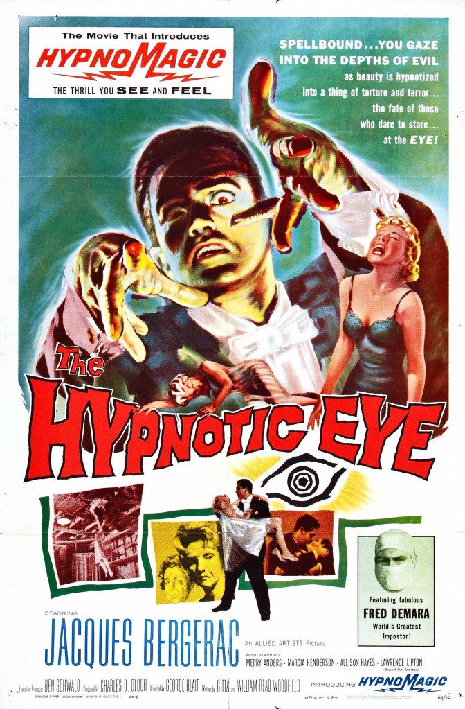 Everybody has probably been haunted or permanently tramatized by some movie they saw as a kid that burned images into their brain they couldn’t process or handle. For me it was a sick little B-movie that popped up on the late show called The Hypnotic Eye (1960), which I saw at the age of nine.
