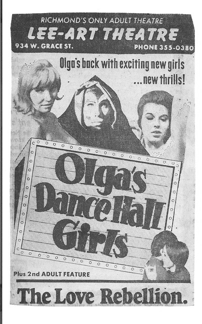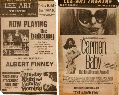 Wow. I didn’t know about the burlesque/stripper acts between shows in the 80s. I left Richmond in 1973 and missed all of that. The Biograph, just a few blocks up the street from the Lee Art, was also great and was where I first saw Performance, Night of the Living Dead, and the rock documentary Groupies. I particularly remember a midnight showing of Reefer Madness which opened with a very explicit preview of Deep Throat. I think even the young, mostly stoned audience was shocked! Thanks for your memories.