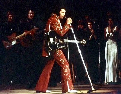 The songs featured in Elvis on Tour reflect Elvis’ musical interests at the time as well as the current trends in American pop music. They’re a long way from the path blazing R&B and rock ‘n roll numbers that took Elvis from obscurity to international fame. Whereas he was once seen as an innovator, some fans now saw him as merely an interpreter, performing mainstream pop that was beneath his talent or better left to lesser talents like Three Dog Night. “Never Been to Spain”? “Bridge Over Troubled Water”? “Memories”? Could these compare to the vitality and urgency of “That’s All Right” or “Jailhouse Rock” or “Mystery Train”? Not in the opinion of those fans who preferred the music of Presley’s pre-army period. Nevertheless, the king continued to perform to sell-out crowds around the world who loved his live shows, regardless of his musical selections.