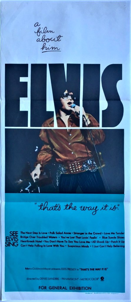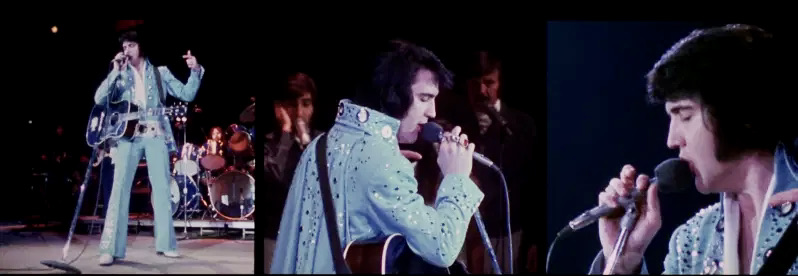 First, a little background. In the early 1970s Elvis was fed up with starring in formulaic musical comedies with interchangeable plots and ingenue leads. He decided it was time for a change and his manager Parker cut a deal with MGM to produce two documentaries that would showcase Elvis in his element – performing live before his adoring fans. There was also an ulterior motive for this. With the singer’s record sales and movie receipts slowly dwindling, it was time to remind audiences that he was still the greatest living entertainer in America, if not the world.