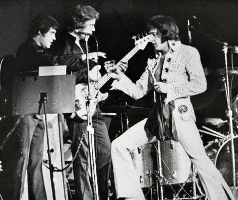 Certainly, one of the most fascinating aspects of Elvis on Tour are the candid, behind-the-scenes moments: Elvis looking exhausted and lost in his own thoughts after a Florida concert; an awkward, strained encounter between “The King” and a Chamber of Commerce representative from Roanoke, Va. who presents Elvis with a flower-decorated guitar; Vernon, Elvis’s father, looking completely overwhelmed by the pre-concert activity backstage; a funny impromptu moment during Elvis’s performance of “For the Good Times,” when Elvis responds to the lyric “How am I doing?” with the ad-lib “Well, I’m sweating a little bit, baby” instead of “Well, I guess I’m doing fine.”