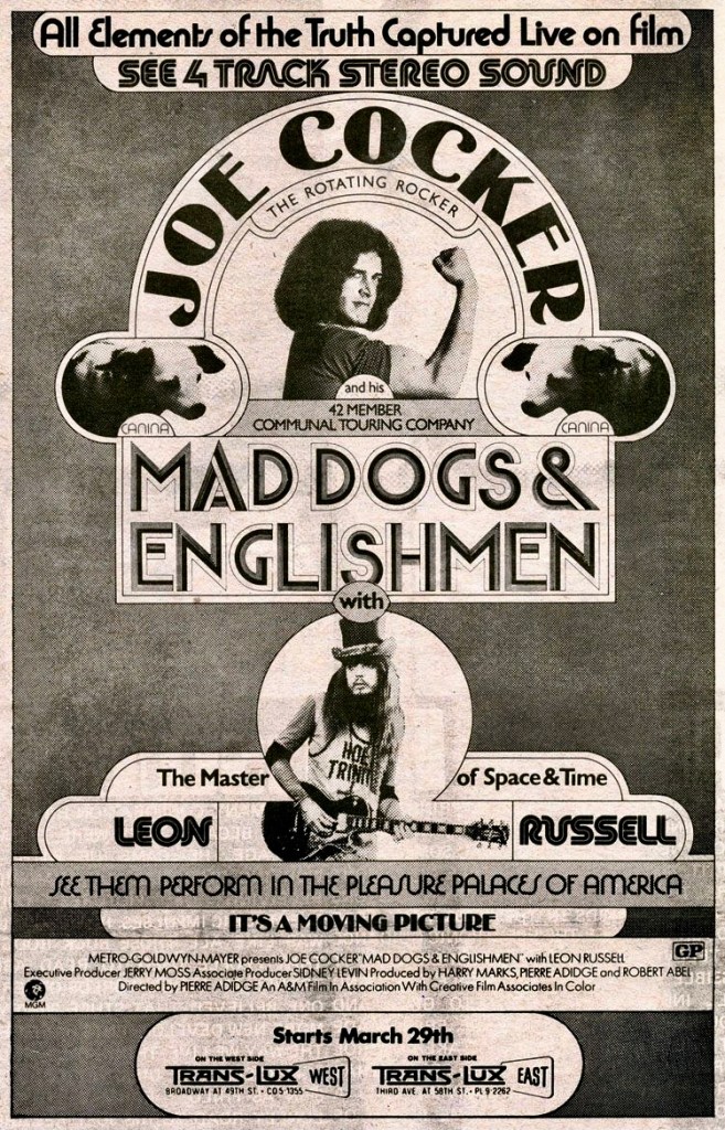 The filmmakers behind Elvis on Tour were Pierre Adidge and Robert Abel who established themselves with the groundbreaking, split-screen concert film, Joe Cocker: Mad Dogs and Englishmen (1971), a document of Joe Cocker’s 1970 U.S. tour. (Adidge and Abel would also utilize their split screen technique for this documentary and Let the Good Times Roll (1973), a record of promoter Richard Nader’s rock ‘n roll revival show featuring Bo Diddley, Chuck Berry, Little Richard and others).