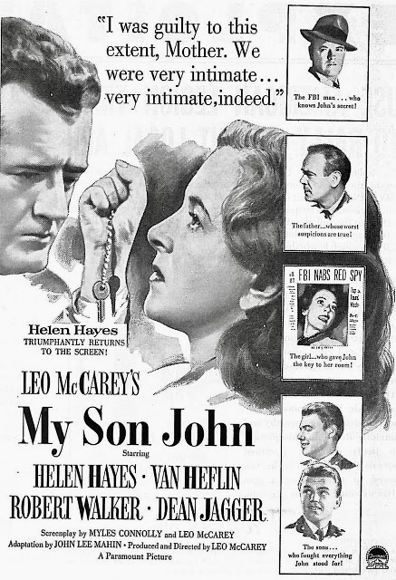 Prior to production on My Son John, Robert Walker was excited about the possibility of working with Helen Hayes and Leo McCarey, even though he thought the screenplay for the movie was overwrought propaganda. Unlike many of his fellow actors in the industry Walker was neither liberal nor conservative and would probably classify himself as apolitical.
