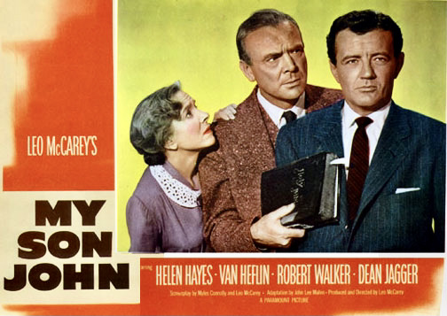 McCarey’s ultra-conservative sensibilities were actually no secret to those who knew him well and had become more pronounced in the late forties. In fact, prior to My Son John, McCarey worked with Father James Keller, a writer and founder of a Catholic sect called the “Christophers,” to produce a series of short films that would address a “war on evil influences.” Although only one short was actually produced, it was a religious sermon against the rise of communism entitled You Can Change the World (1951) and featured such guest stars as William Holden, Bing Crosby, Bob Hope and Irene Dunne.