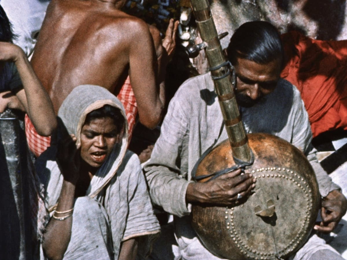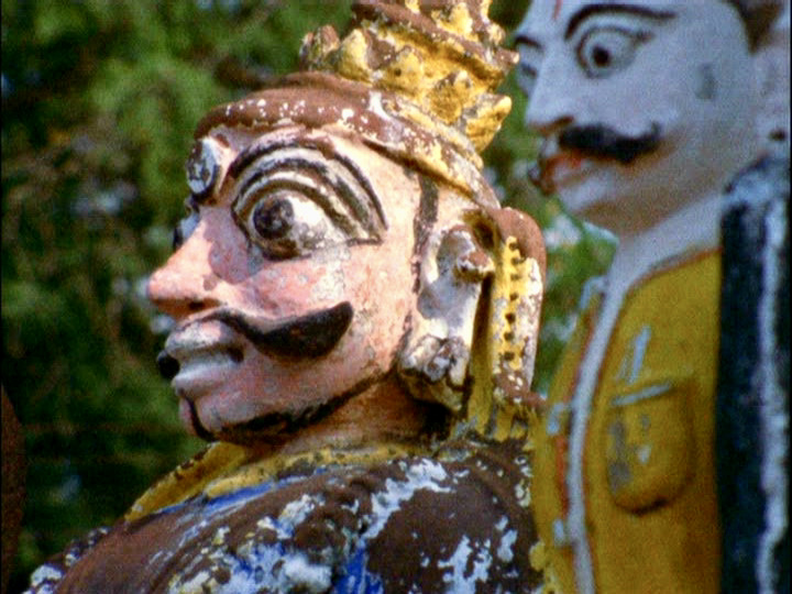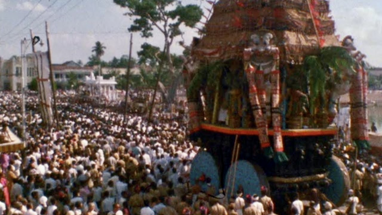 The exotic sights continue in Calcutta and Phantom India as Malle and his tiny crew capture a celebration at Kapaleshvara where hundreds of people move a mammoth float weighing tons around the city in a five hour procession that makes rolling a boulder up a hill look easy. We see a street circus where some of the acrobats are mere children including the star attraction, a little girl who is swung from a tall pole by a rope around her waist. And we get a glimpse of the Bollywood movie factory in Madras where they are filming the melodrama Thillana Mohanambal starring Sivaji Ganeshan, referred to as the “Jean-Paul Belmondo of India.”