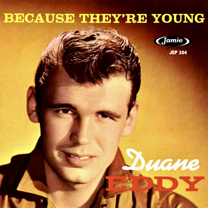 Besides the great opening instrumental by Duane Eddy, the guitarist also makes an on-screen appearance in the high school dance sequence. He is cleverly introduced as a pair of hands playing the guitar in closeup before the camera pulls back to reveal him and his band, the Rebel Rousers, launching into “Shazam!”, another huge hit for the group (which was co-written by Lee Hazlewood). Eddy was handsome enough to be a movie star and even tried his hand at acting in a few supporting roles such as A Thunder of Drums (1961), the biker flick The Savage Seven (1968) and Kona Coast (1968) as a character named Tiger Cat, but luckily stuck to a recording career and we’re glad he did.