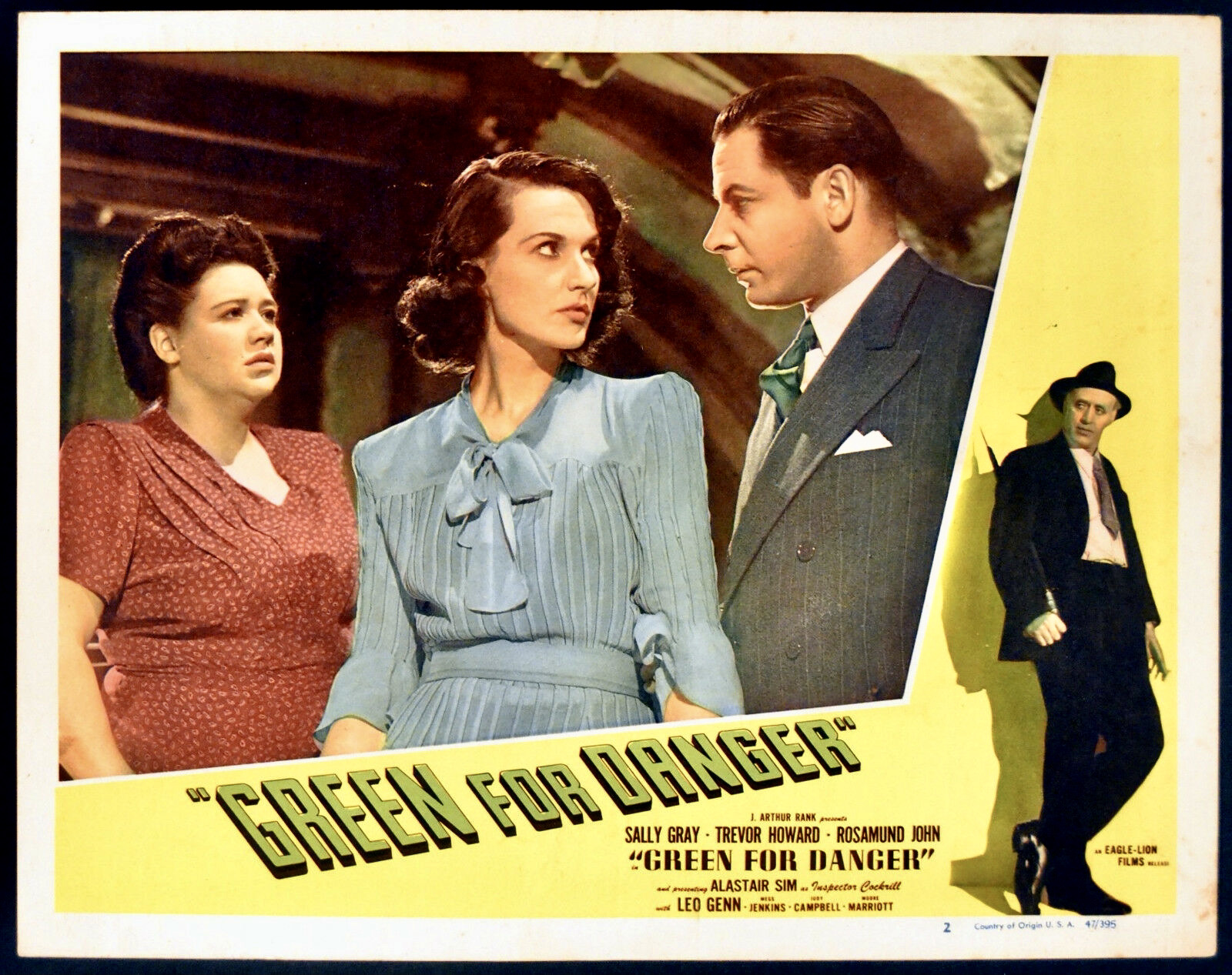 First, Gilliat went to work on a screenplay with Claud Gurney but production was temporarily halted when Gurney was killed in a car accident. Gilliat soon forged ahead on his own and initially considered casting Robert Morley in the role of Cockrill. Sim won the part in the end and Green for Danger is notable for being one of the earliest movie productions filmed at Pinewood Studios, which is about 18 miles west of London.