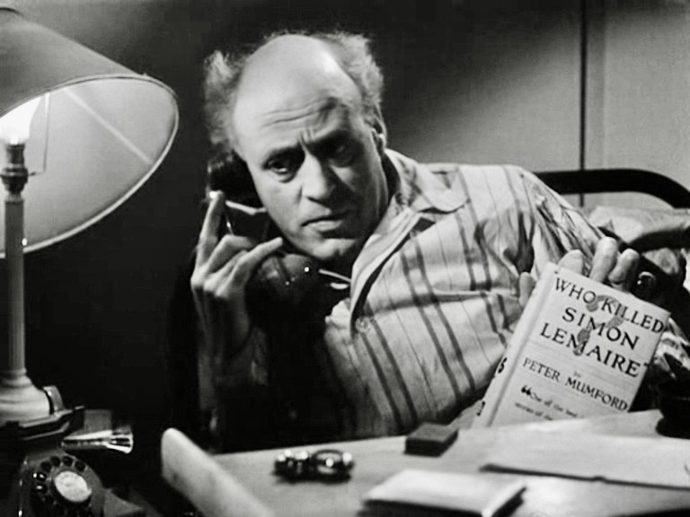 When first introduced in the film, Sim’s Cockrill appears somewhat skittish and silly, frantically searching for shelter from what he believes is an approaching German “buzz-bomb” and is, in fact, a motorcar. But as soon as he begins his investigation of a nurse’s murder and what appears to be the unconnected death of a mailman during surgery, we see the real Cockrill – an almost maniacal pursuer of the facts who approaches his suspects like a mongoose stalking a cobra, fixing them with his baleful eyes and slightly sadistic smile.