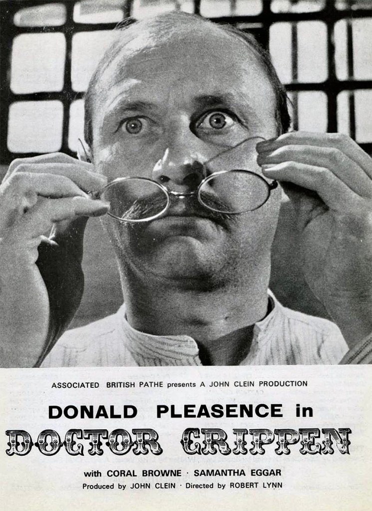 British actor Donald Pleasence has played his fair share of nutters and villains through the years from infamous grave robber William Hare in The Flesh and the Fiends (1960) to Blofeld, James Bond’s nemesis, in You Only Live Twice (1967) to the dangerous religious fanatic in Will Penny (1968) to the insane scientist of The Mutations aka The Freakmaker (1974). At the same time, he has also specialized in playing cold, analytical authority figures who, while on the side of good, is often more unsettling than comforting as in his iconic role as Dr. Loomis in Halloween (1978) and four of its sequels. His portrayal of Dr. Hawley Harvey Crippen, the most notorious murderer of the Edwardian Age, in Dr. Crippen (1963), however, doesn’t really fit into either category and displays yet another side of the Pleasence persona – a quiet, unassertive enigma, a blank slate for us to fill in the details. The eyes, which reveal nothing, seem to look right through you.