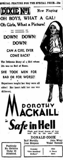 Truly one of the strongest and most disturbing of all the Pre-Code films, Safe in Hell is especially noteworthy for Dorothy MacKaill’s moving performance which convincingly blends sexiness, vulnerability and a hard-as-nails toughness. A former Ziegfeld Follies showgirl, MacKaill had a delicate beauty that contrasted strikingly with the streetwise heroine of Safe in Hell. It’s a shame she wasn’t given better opportunities during the sound era after enjoying great success as a silent star in such films as The Man Who Came Back (1924), Chickie (1925) and Joanna (1925). However, one of her better talkie-era features is Love Affair (1932) opposite a very young Humphrey Bogart in his sixth movie role.