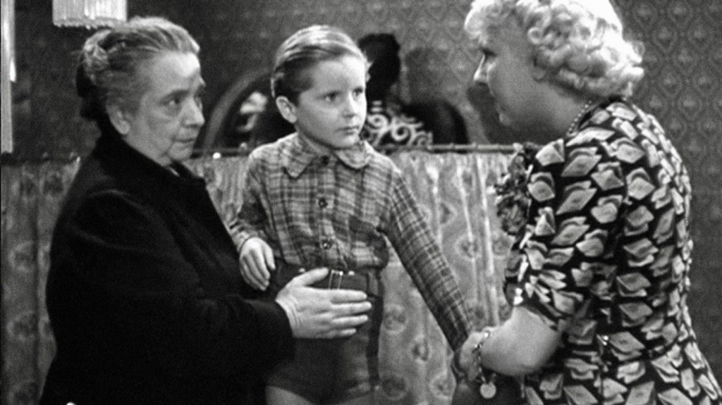 Despite the use of some interior studio sets, the beginnings of neorealism style can be observed throughout The Children Are Watching Us in De Sica’s choice of outdoor settings and real locations with nonprofessionals. The scene where an overcrowded tram stops on a street in Rome to deposit and take on additional passengers is a telling snapshot of its era, vivid with documentary detail, and the seaside sequence with middle-class Italians on holiday works as both a social critique of class structure and an evocative carefree moment in time before the nation felt the full impact of World War II.