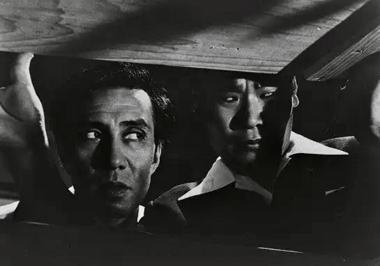The final scene also reminds me of that iconic conclusion to Henri-Georges Clouzot’s The Wages of Fear (1953) as Mario (Yves Montand), the sole surviving truck driver in a deadly transport of nitrogylcerine, gets cocky and starts weaving his vehicle from side to side on a hazardous road. As the radio plays The Blue Danube waltz, Mario loses control of the truck and goes over a cliff. Asami is also undermined by a sense of being invulnerable and gleefully sings a little ditty amid the piles of cash in his hearst. Tamio (Jiro Okazaki), the sportscar-obsessed, callous young lover of Suji, and his female companion witness Asami’s comical demise but somehow miss the most important detail about the wreck – the sight of hundreds of dollars being spirited away in the breeze like the exposed loot at the airport climax of The Killing or the wind-blown gold dust at the end of The Treasure of the Sierra Madre. In this case, the last laugh clearly belongs to director Sato.