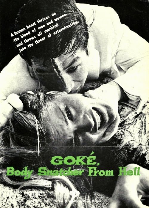Goke, Body Snatcher from Hell (1968) is Sato’s real claim to fame and is a delirious assault on the senses. A Vietnam era fatalism pervades the entire film which follows a group of plane crash survivors being terrorized by a vampiric stranger (he invades his victims through an oozing wound in his forehead). The film is a popular cult item and was included in the much sought-after Eclipse Series 37: When Horror Came to Shochiku (from the Criterion Collection).