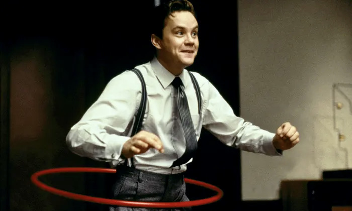 Synopsis: When the president of Hudsucker Industries commits suicide by taking a running jump through the forty-fourth floor boardroom window, his executive staff panics. But chairman of the board Sidney J. Mussburger (Paul Newman) finds a way to turn the situation to his advantage by concocting a devious stock manipulation that will devalue the Hudsucker holdings and allow him and his cronies to buy them up cheaply. All he has to do is hire a total moron to run the company and let nature take its course. Mussburger finds the perfect patsy in Norville Barnes (Tim Robbins), a bumbling mailroom employee. Complicating matters is investigative reporter Amy Archer (Jennifer Jason Leigh), who goes undercover as a secretary at the company and learns what is really going on at the top. In the end, it is Norville’s idea for a children’s toy – the Hula Hoop – that ultimately reverses the company’s poor financial situation and sabotages Mussburger’s master plan.