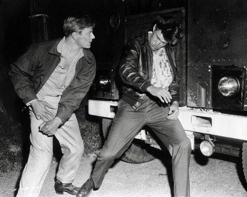 While Death in Small Doses, directed by Joseph M. Newman (711 Ocean Drive, This Island Earth), is fairly conventional in execution for the crime expose genre, it is the involvement of a better than average cast, some hardboiled dialogue mixed with hepcat lingo and an authentic ambiance that captures the trucker’s world (greasy spoon diners, dingy gas stations, deserted backroads) that lends it some distinction. Peter Graves (younger brother of James Arness) makes a solid if unexciting protagonist but the actor graced many a B movie during the fifties; he made this between the infamous drive-in classic Bayou (which was later reissued as Poor White Trash) and Wolf Larsen (both 1958).