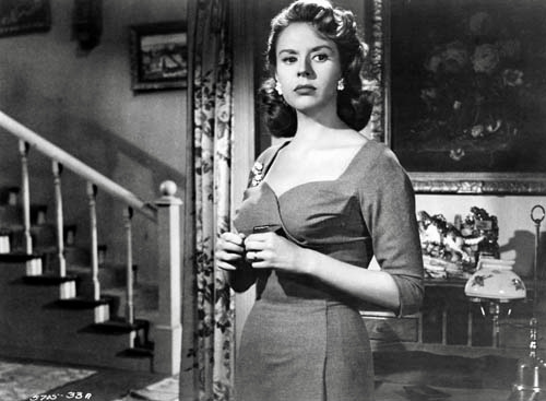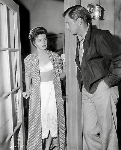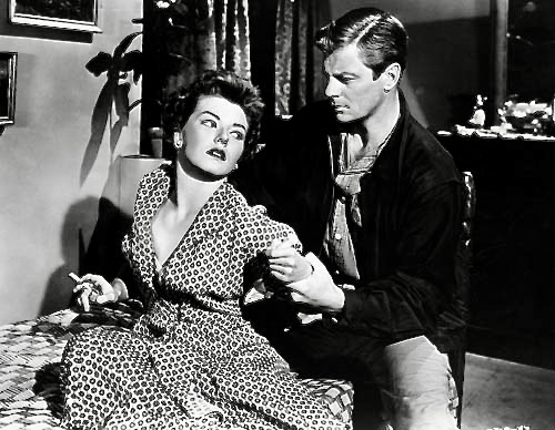 Mala Powers stars as the atypical love interest here and she brings a sultry, seductive quality to her boarding house proprietress. She’s also hard to read on an emotional level which adds a bit of mystery to her character. Note the disembodied manner in which she explains her philosophy of life: “The way it seems to me, everything that happens to us in life is part of a bargain. To get certain things, we lose others. There’s no use in crying over our losses. We just play along and try to come out ahead.”