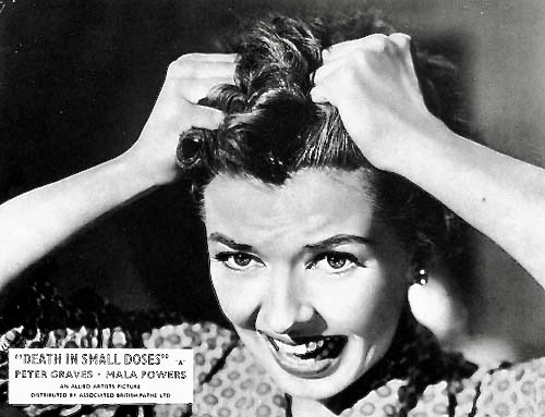 In contrast to Grave’s buttoned-up, low key undercover agent are two alluring femme fatales and fellow B-movie queens of the fifties and sixties – Merry Anders (Calypso Heat Wave, The Hypnotic Eye, House of the Damned) and Mala Powers (The Colossus of New York, Flight of the Lost Balloon). Anders is the standout here as a hopped-up truck stop waitress who starts to crack under the effects of her addiction as well as the strain of her involvement in a drug ring.