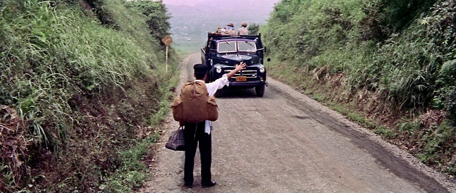 Part of the film’s appeal stems from its road movie-like scenario which follows Shintaro and the carnival troupe’s sojourn through rural villages and picturesque locales. There are also parallels – intentional or not – to other movies about carnival life like Variety Lights (1950), co-directed by Federico Fellini and Alberto Lattuada, which featured a shabby, third rate caravan of entertainers not unlike the Kinyo Imai Traveling Magic Show. The character of Kurita (Kyoji Sugi), the clown, is also similar to the sad-eyed Buttons (James Stewart), a man in greasepaint running from his past, in Cecil B. DeMille’s The Greatest Show on Earth (1952).