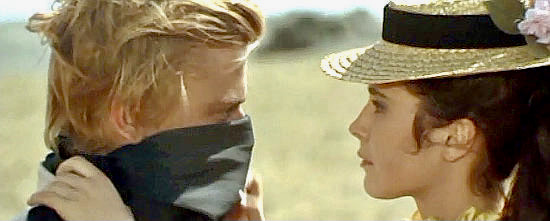 The first meeting of Johnny and Guilietta is also original. When Lefty and Johnny hold up a stagecoach for money, Guilietta is one of the passengers and she shoots off Johnny’s mask with her concealed pistol. He likes her defiant nature and they meet again later when he attempts to burn down the Campos ranch. [Spoiler alert] Their mutual infatuation grows from there but, in what is certainly the most radical departure from Romeo and Juliet, the young lovers are the only survivors at the climax and happily ride off across the plains. The Campos and Mounters effectively wipe each other out and those who don’t die in the shootout are picked off by Death himself, wearing a skull mask. “This is the day of a black peace,” he proclaims. Whoever calls Death will be answered by Death. And he only has one answer for all of them. The rest is silence.”
