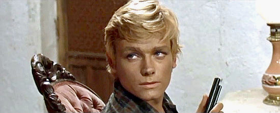 Peter Lee Lawrence aka Karl Hyrenbach, a blond haired German actor, makes his top billed debut in Fury of Johnny Kidd. His only previous role was a bit part in Sergio Leone’s For a Few Dollars More (1965). Lawrence makes a compelling and immensely likable protagonist who convincingly matures during the course of the film from a naïve hothead to a formidable avenger. Even better is Cristina Galbo, who portrays Giulietta as a free spirited and rebellious young woman who knows how to handle a firearm and refuses to obey her father’s demands.