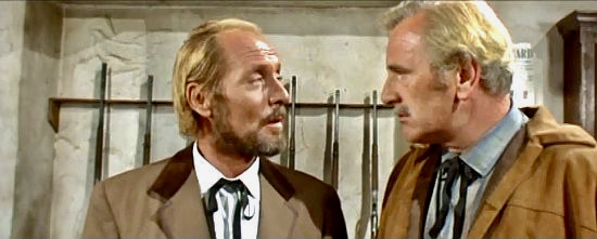 Admittedly, this relationship diverges from the Shakespearean original but there are also other new characters introduced into the mix including a corrupt lawman, Sheriff Cooper (Piero Lulli), who is in cahoots with the Campos clan and has designs on Senor Campos’s lovely daughter Giulietta (Cristina Galbo), and Rosalind (Maria Cuadra), a saloon singer/prostitute who falls hard for Johnny. These are actually welcome additions to the oft-told tale and provide some complexity and surprisingly twists along the way.