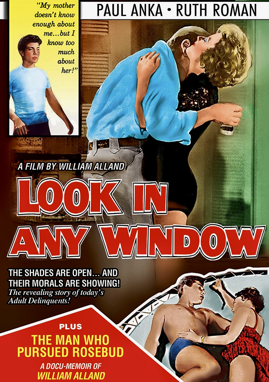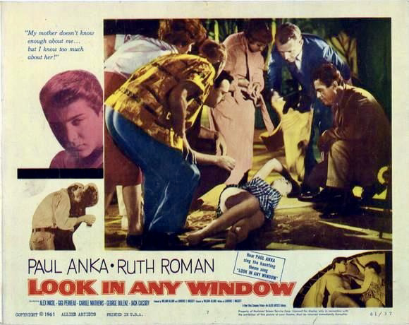 Among the many teen idols of the fifties who climbed to fame with top forty hit records, only a few made the successful crossover to film acting. Pat Boone was groomed by 20th-Century-Fox as a teen matinee idol in Bernadine (1957), Tommy Sands stayed in his comfort zone playing an aspiring pop star in Sing Boy Sing (1958), Fabian made his screen debut with the family-friendly backwoods drama Hound-Dog Man (1959), and Bobby Rydell played your average boy-next-door opposite Ann-Margret in Bye Bye Birdie (1963). Paul Anka, on the other hand, appeared in the most unlikely vehicle for his first major starring role – Look in Any Window (1961).