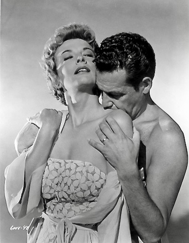 Look in Any Window might have been less memorable without some strong actors in key roles. Chief among them is Ruth Roman, who brings an overripe sensuality and sexual swagger to her love starved housewife. Too much woman for almost any man, Roman has such a strong screen presence that only an actor like Kirk Douglas in Champion (1949) or Sterling Hayden in 5 Steps to Danger (1957) can hold their own against her smoldering, man-eating persona. She has good chemistry with Jack Cassidy’s devil may care Lothario in their scenes together and there is clearly some incestuous innuendo between her and her son, most obviously in the sequence where she rubs lotion on Craig’s scratches (from an attack on Eileen).