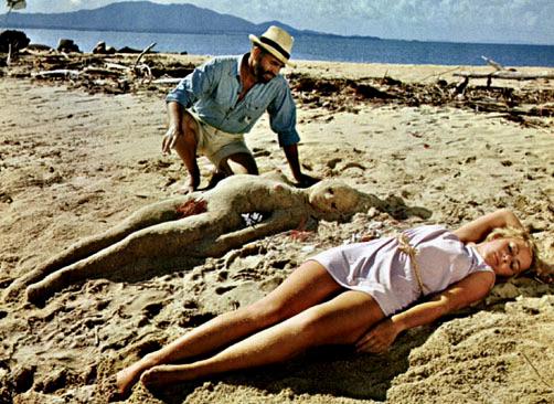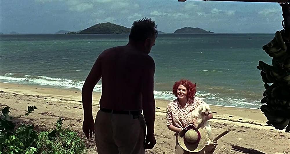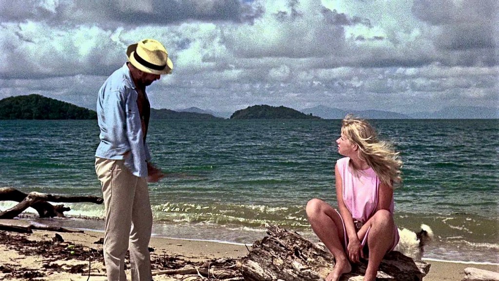 Isabel Marley (Andonia Katsaros) takes an interest in bachelor painter Bradley Morahan (James Mason) in AGE OF CONSENT (1969), filmed in Australian near the Great Barrier Reef.