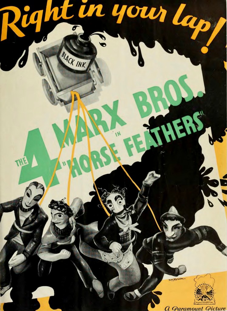 Horse Feathers would be the Marx Brothers’ last major success for Paramount Studios, who would drop their contract after the disastrous box-office performance of Duck Soup, their fifth feature, now considered their peak achievement.