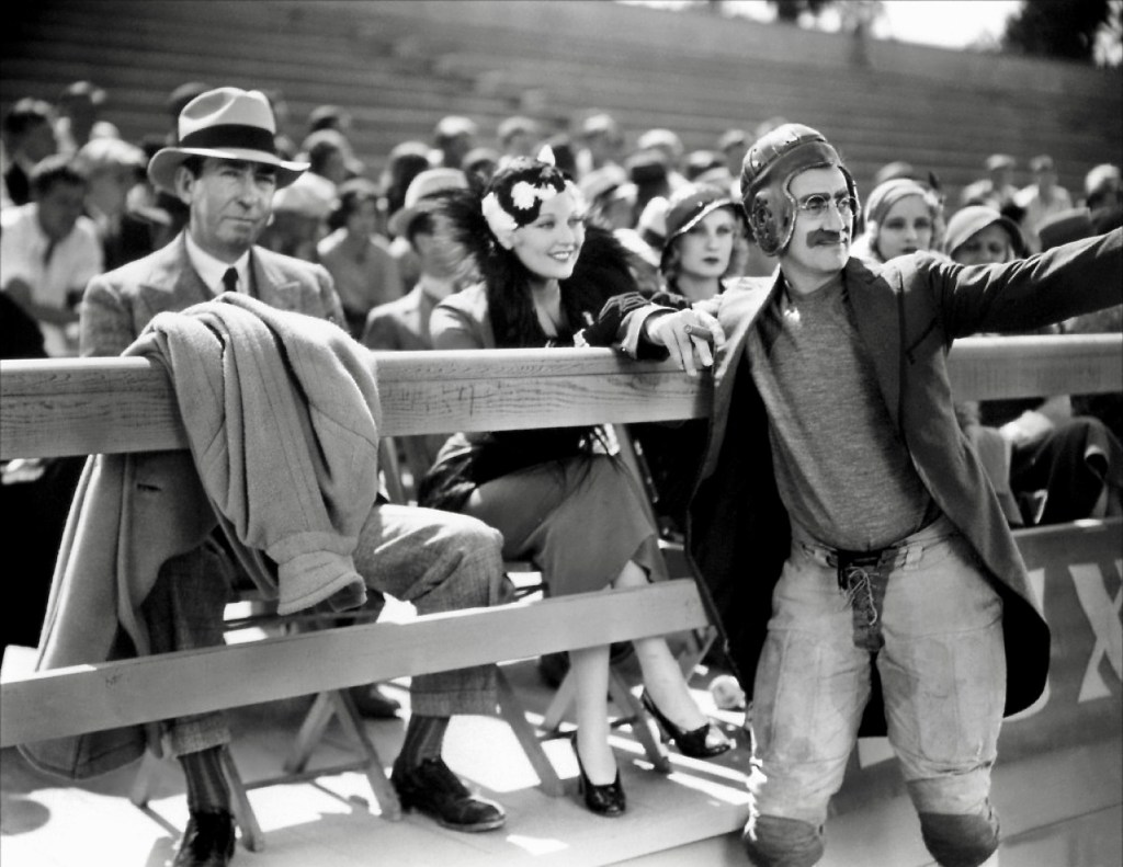 College life and the behavior of students and facility alike has been a source of inspiration for countless satires and parodies on the subject from the silent era (Harold Lloyd in The Freshman [1925], Buster Keaton in College [1927]) and early sound period (Laurel & Hardy in A Chump at Oxford [1939]) on up to more contemporary examples such as National Lampoon’s Animal House [1978], Van Wilder [2002] and Accepted [2006]. Certainly one of the funniest and most memorable of all is Horse Feathers (1932), a madcap burlesque of university life starring The Marx Brothers in which the institution of higher education is held up for ridicule and satirized mercilessly.