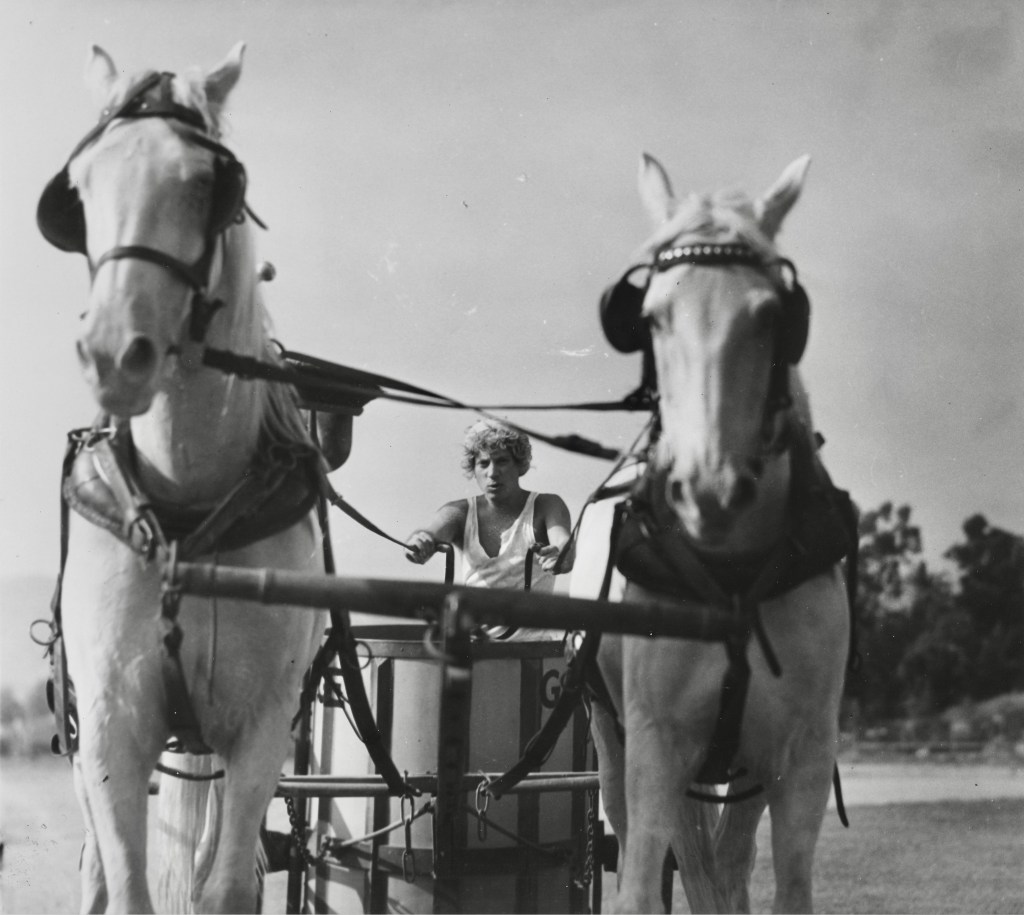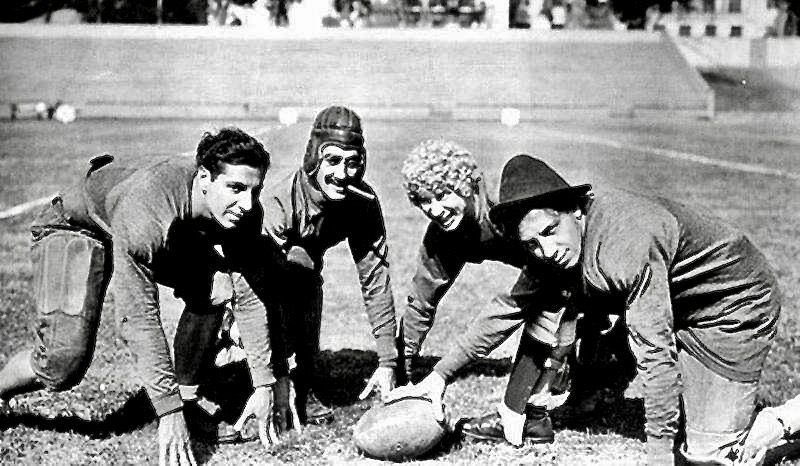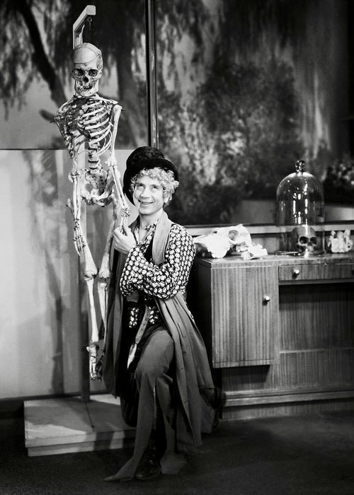 The actual filming of Horse Feathers had its ups and downs with Chico causing a two month delay due to a major traffic accident that shattered his knee and broke several ribs. The original ending – which had a victory bonfire blazing out of control across the campus – was scrapped for budgetary reasons and substituted with the now famous wedding ceremony between Thelma Todd and her THREE grooms – Groucho, Chico, and Harpo.