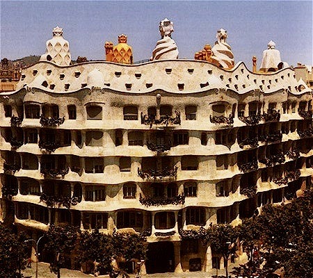 Anyone who has seen a few movies filmed in Barcelona, Spain, has undoubtedly caught a glimpse or maybe even a close-up of one of the architectural wonders created by Antoni (aka Antonio) Gaudi or one of his contemporaries such as Lluis Domenech I Montaner or Josep Puig I Cadafalch in the “Modernisme” movement of 1888-1911. This brief period resulted in awe-inspiring buildings and structures with designs based on organic forms or taken directly from nature – beehives, mushrooms, stalactites – that broke away from conventional design and accented curves and rich ornamentation (broken pieces of colorful ceramic tile worked into wall mosaics). This unique architectural style is an art director’s dream and a natural for the screen, which is why it has been the co-star in countless movies filmed in Barcelona such as Susan Seidelman’s Gaudi Afternoon (2001) and L’Auberge espagnole (2002), in which Gaudi’s still-in-progress La Sagrada Familia (it was started in 1883) is prominently featured.