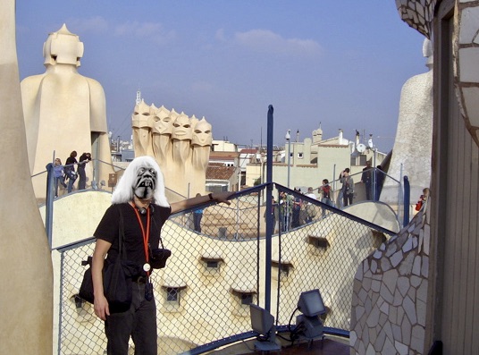 The plot – an American drifter gets seduced into a drug-taking cult presided over by Eric the Pusher (played by George Montgomery!!) – isn’t nearly as memorable as the Barcelona and the Ibiza location footage. But both The Hallucination Generation and The Passenger were buzzing in my head when I finally climbed the staircase to the La Casa Mila rooftop with my wife in November 2007 and experienced it for myself. The only question I had was why did the staff at this World Heritage site insist on using ugly chain-link fencing to border the roof instead of using something more aesthetically pleasing as a barrier for tourists? It’s been there at least since 1975 – because it’s visible in The Passenger – and maybe longer.