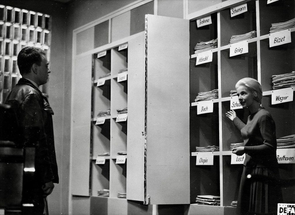 While most hardcore film buffs are well versed in the movies of Fritz Lang, Robert Siodmak, F.W. Murnau and their latter compatriots Werner Herzog, R.W. Fassbinder, Wim Wenders and Volker Schlondorff, directors such as Kurt Maetzig, Joachim Kunert and Gerhard Klein are completely unknown or unfamiliar to Western audiences for an obvious reason. They worked for DEFA (Deutsche Film Aktiengesellschaft), the nationalized film industry of East Germany, and as a result, very few of their movies were distributed outside of socialist countries during the Cold War Era when DEFA was in its prime. A rare exception was Kurt Maetzig’s Der Schweigende Stern aka The Silent Star, a science fiction adventure which was released in the U.S. in an edited, English dubbed version as First Spaceship on Venus in 1962. Much more complex and thematically intriguing is Maetzig’s Das Kaninchen Bin (English title: The Rabbit is Me, 1965) along with Joachim Kunert’s Das Zweite Gleis (English title: The Second Track, 1962) and Gerhard Klein’s Die Fall Gleiwitz (English title: The Gleiwitz Case, 1961).