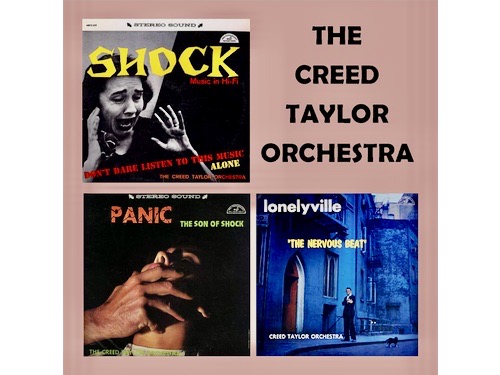 According to an interview with record collector Mickey McGowan for Re/Search Magazine’s Incredibly Strange Music issue, Volume 1, “The Creed Taylor Orchestra made Shock Music in Hi-Fi, which bore a warning, “Don’t dare listen to his music alone!” It’s a masterpiece from the beginning, starting with loud heartbeats. “The Crank” effectively conveys the fear which a crank phone call can inspire. “The Secret” features a man and a woman laughing conspiratorily, and raises the question: “Is a secret still a secret once it’s told.” Creed Taylor’s follow-up album was Panic: the Son of Shock. Both of these LPs should also be credited to the film composer Kenyon Hopkins….You hear heavy breathing, whispering, clapping, heartbeats, shudders, screams – a whole gamut of effects. After these two masterpieces, Hopkins hit paydirt in the mid-60s with Nightmare, which has the sound of a plague of locusts coming in for the kill. “Chamber of Horrors,” besides sounding like a horror music soundtrack, really is beautiful…..He used the sound of a telephone ringing to create incredible suspense; he used footsteps, creaking doors and glass breaking to dreadful effect….He recorded a few more albums including Lonelyville, which is great private-eye jazz…He recorded a series of Verve Sound Tours in which he took the music of a given country…and mixed in the sounds of people at a sidewalk café in Paris….He also did…Riding the Rails – the cover shows two fashion models who’ve just “hopped a freight.”