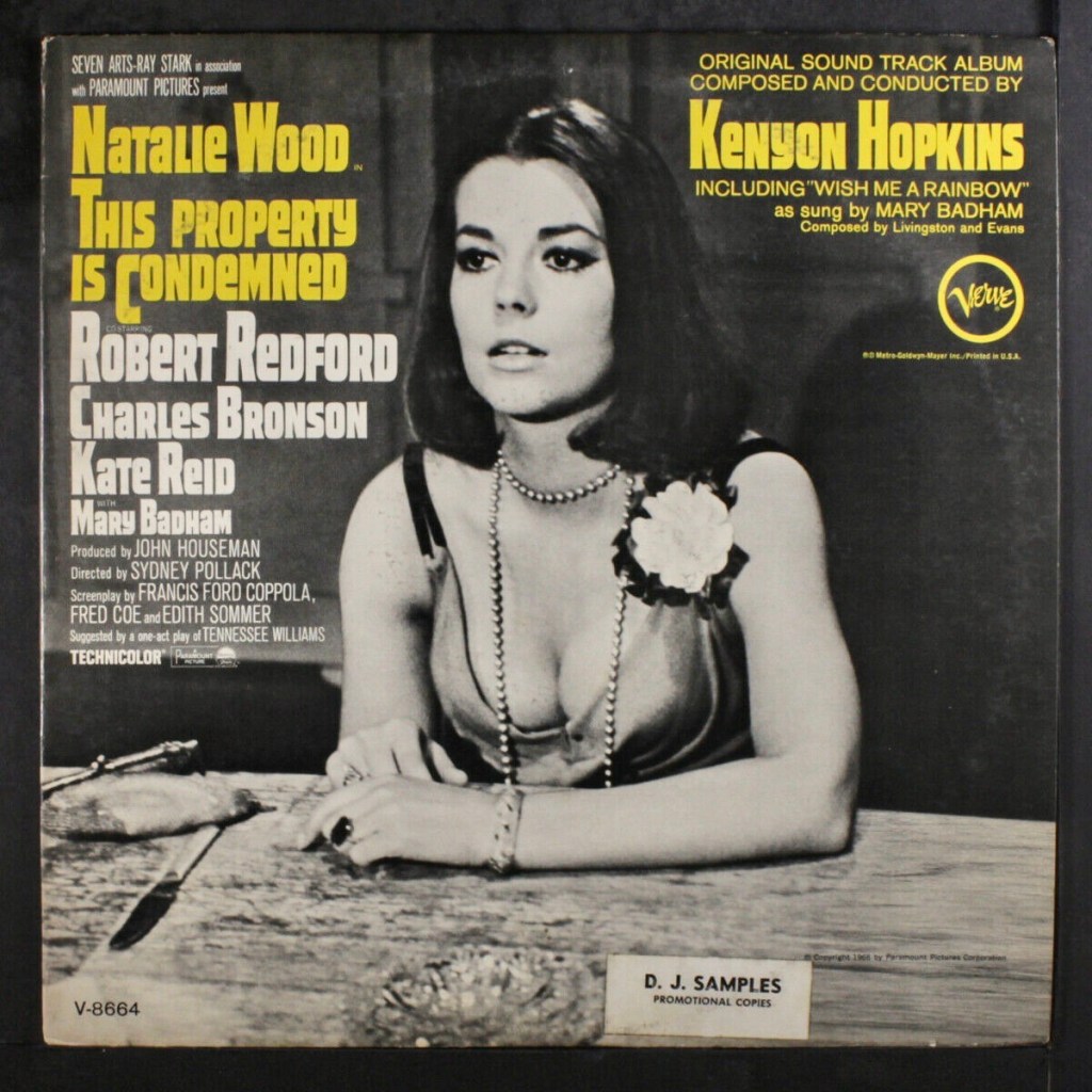 While this 1966 film adaptation of the Tennessee Williams play directed by Sydney Pollack (from a screenplay co-written by Francis Ford Coppola) was not a complete success, it featured memorable performances by Natalie Wood, Robert Redford, Kate Reid and Charles Bronson and the music score by Hopkins was full of nostalgic yearning, tension and sadness. There was a fragile beauty to it that I still recall. Here are the original track listings from the album soundtrack and co-star Mary Badham, the child actress of To Kill a Mockingbird who played a supporting role in the film, sings the theme song.