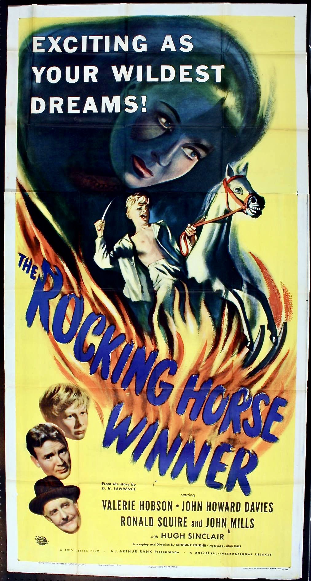 What are your favorite film adaptations of famous short stories? Among the titles in my top 20 list are Rear Window (1954), based on Cornell Woolrich’s “It Had to Be Murder,” All About Eve (1950), adapted from Mary Orr’s ”The Wisdom of Eve,” The Body Snatcher (1945), which was taken from Robert Louis Stevenson’s story of the same name, It Happened One Night (1934), based on Samuel Hopkins Adams’ “Night Bus,” and The Rocking Horse Winner (1949), which is one of D.H. Lawrence’s best known short stories. However, the latter film is a largely unsung minor masterpiece of the British cinema that is highlighted by impeccable performances and an eerie Gothic atmosphere with almost supernatural overtones.