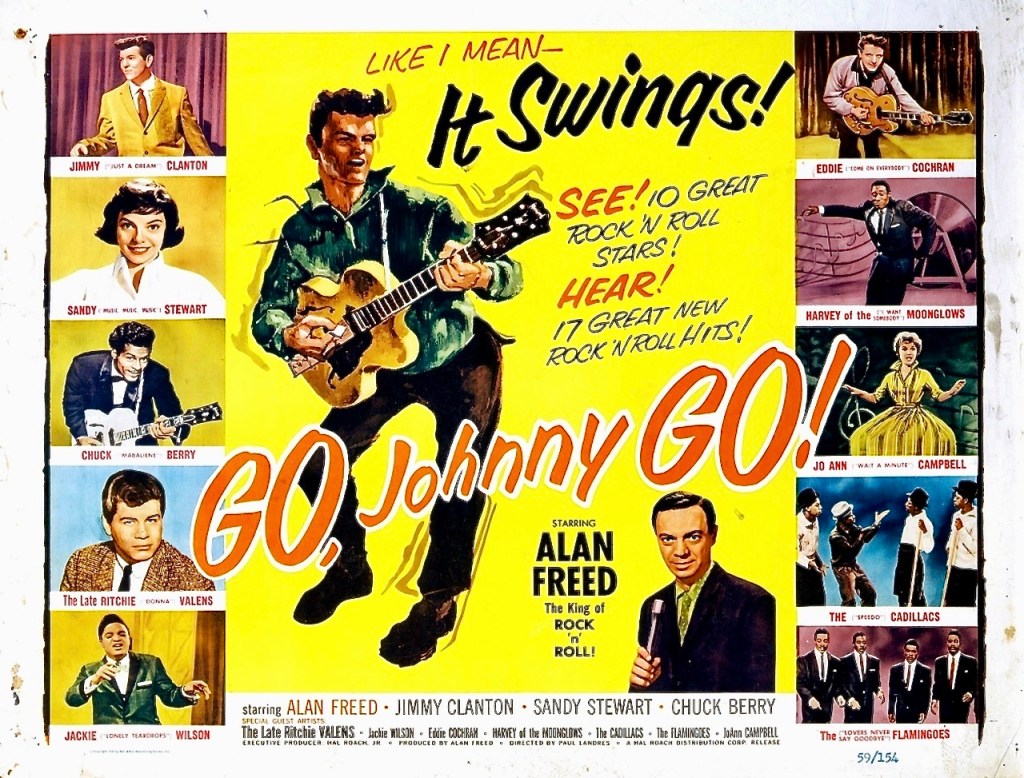 Can a penniless teenager, raised in an orphanage and self-trained as a musician, overcome the odds and win the star search radio contest hosted by superstar disc jockey Alan Freed? It’s a cinch because Go, Johnny, Go! (1959), directed by Paul Landres, is a clichéd Hollywood fantasy of pop stardom modeled on previous box office hits like Rock Around the Clock (1956) and Jailhouse Rock (1957). Yes, the story is trite, the acting is wooden and its low-budget, set-bound look is uninteresting, but none of that is important when you consider the musical talent on display in the film. With such early rock ‘n roll pioneers as Chuck Berry, Eddie Cochran and Ritchie Valens blazing across the screen, Go, Johnny, Go! is not only an invaluable pop culture document but an immensely entertaining and occasionally cynical look at the burgeoning music industry of the late fifties.