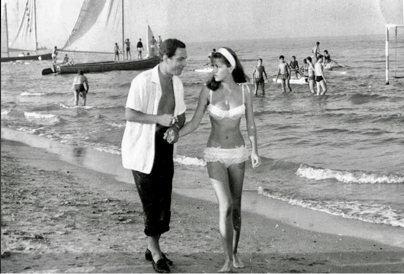 Spaak also displays a wicked sense of humor and a penchant for making frank comments that often shock the people in her presence, character traits which were not typical of her other teenage roles. There is a particularly delightful sequence at a dance hall where everyone is doing the twist and Dora observes a short male dancer whose face is fixated on the breasts of his tall female partner, commenting “He looks like he is breast feeding.” Her interactions with Michele are equally unexpected such as a scene where she points out Giacomo in the street and says, “He’s the one who popped my cherry.” She is no less direct in addressing Giacomo’s courtship of her with remarks like, “Don’t hold me like that. It looks like you’ve arrested me.”