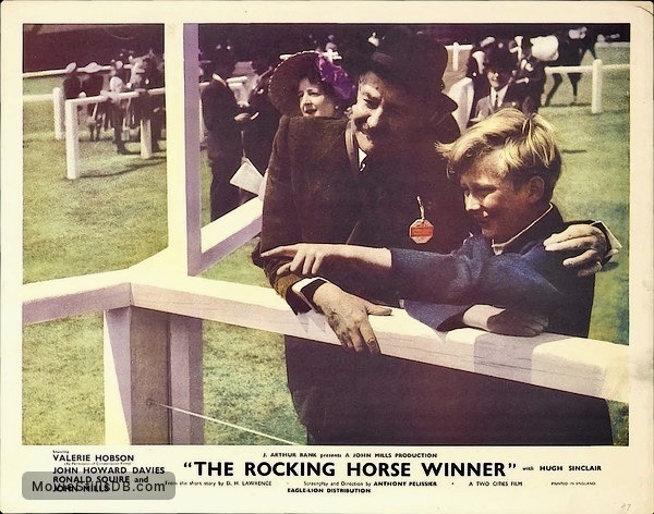 John Mills, who plays the minor but pivotal role of Bassett, the boy’s only friend, was also the producer of the film. In his autobiography, he said, “Although I considered it to be a difficult subject to tackle, flushed with what I thought at the time was the box-office success of [The History of Mr.] Polly [1949], I decided to take a chance. The Rocking Horse Winner finally emerged as another artistic triumph and a box-office disappointment. It was again well-directed, well-acted…Looking back I realize I made one stupid mistake – I played a small part in the picture. This, at a time when I was a big draw at the box office, and able to carry a picture on my name alone above the title, was asking for trouble. I got it, and deserved it. I was deluged with mail from my fans, who said they didn’t expect to pay good money only to see me on the screen for about ten minutes.”