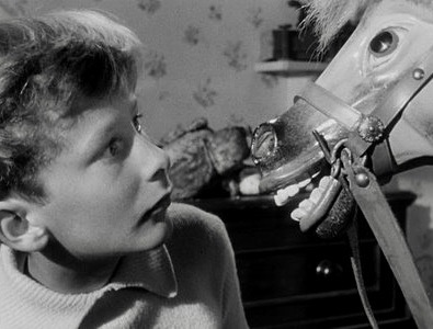 The moody black and white cinematography of The Rocking Horse Winner with its wonderful mix of light and shadows is by Desmond Dickinson, who is best known for some of the best mid-20th century British film classics such as Hamlet (1948), The Browning Version (1951) and The Importance of Being Earnest (1952). Equally impressive is the suspenseful and eerie score by William Alwyn, which transports the film from the ordinary into the realm of the supernatural. Among Alwyn’s more famous movie scores are Green for Danger (1946), The Fallen Idol (1948) and The Crimson Pirate (1952).
