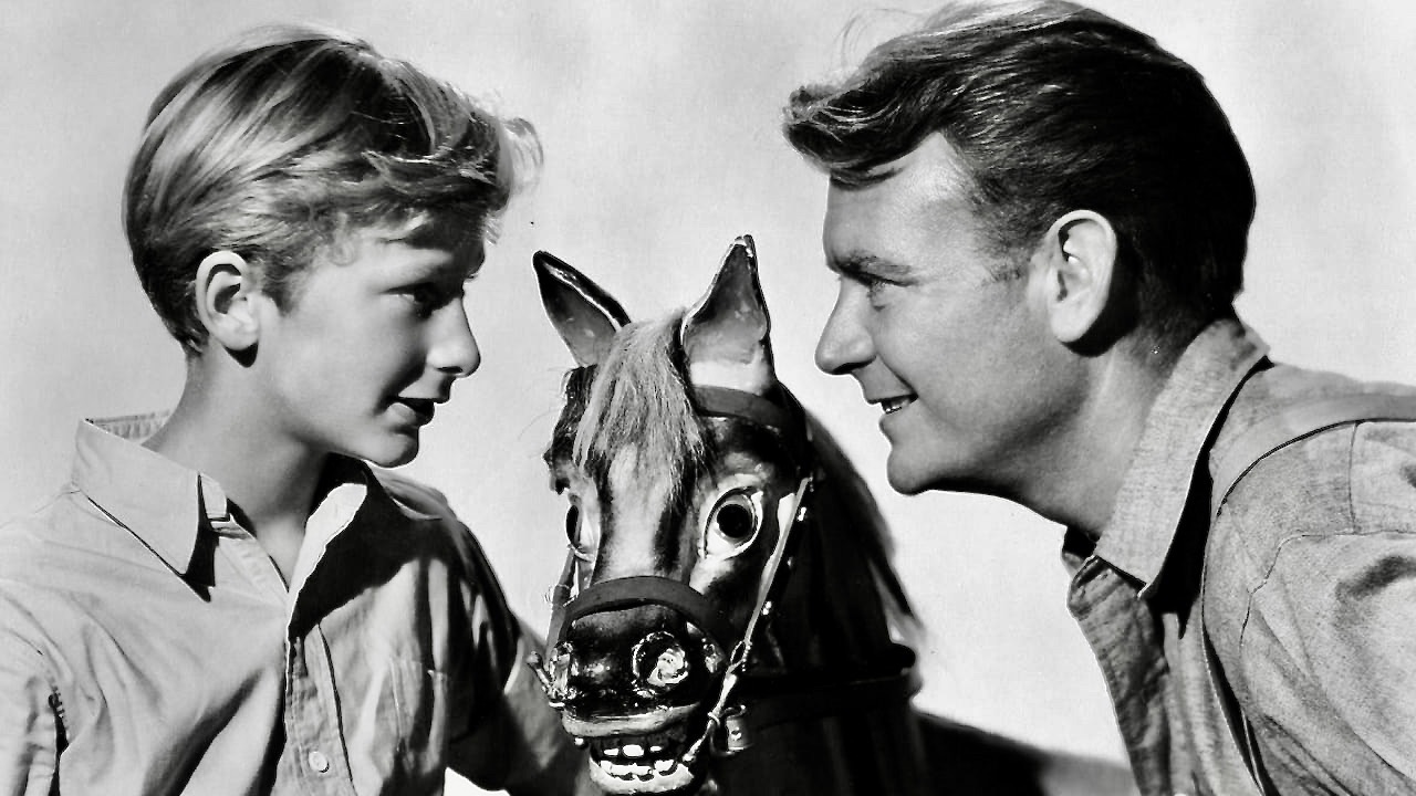 The story opens in the household of Mr. and Mrs. Grahame, a socially prominent couple, who with their three children and household servants, are living far beyond their means. When Richard Grahame (Hugh Sinclair) is sacked from his job and Oscar Cresswell (Ronald Squire), the brother of his wife Hester (Valerie Hobson), refuses to lend them any more money to support their extravagant lifestyle, Paul (John Howard Davies), the oldest child, becomes acutely aware of the financial crisis his parents face. He might be able to solve their problem, however, because he’s learned he has a knack for picking race horse winners in the secret bets he makes with Bassett (John Mills), the family’s handyman. At first, it’s just a thrilling game that proves he has an extraordinary gift but soon it becomes an obsession to accumulate more and more money for his greedy parents. So Paul drives himself harder and harder on his oversized rocking horse, the source of inspiration for his mystical racetrack predictions. Meanwhile, Mr. and Mrs. Grahame have resumed their insatiable spending habits, oblivious of the toll it is taking on their son.