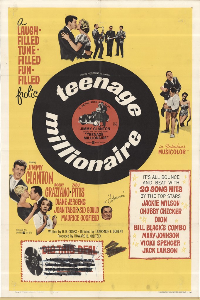 Additional trivia: The working titles for the movie were Johnny Melody, The Swinging Story, and The Swinging Story of Johnny Melody but was ultimately changed to Go, Johnny, Go after Clanton’s popular single, “Go, Jimmy, Go.” Jimmy Clanton would appear in one more film, Teenage Millionaire in 1961, but his music career began to fade after he was drafted into the army and was over by the mid-sixties as the British Invasion took over American pop charts. He became a disc jockey in the 70s and began to perform again in revival shows. One of his songs, “Just a Dream,” was featured in Francis Ford Coppola’s 1986 film, Peggy Sue Got Married.