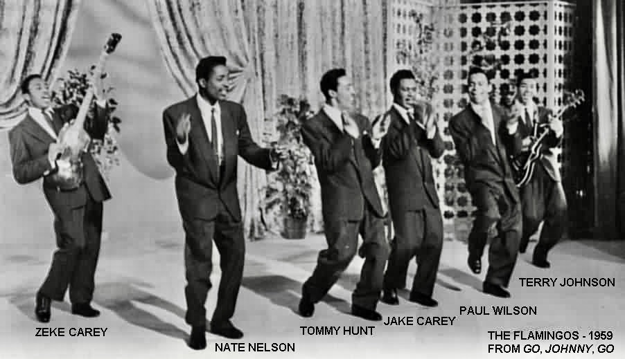 The other memorable acts in Go, Johnny, Go! include Harvey [Fuqua] (of the Moonglows) singing “Don’t Be Afraid to Love,” Jo-Ann Campbell’s saucy “Mama, Can I Go Out?”, The Cadillacs performing “Please Mr. Johnson” and “Jay Walker”, and Sandy Stewart, cast in the unflattering role of Clanton’s girlfriend/aspiring vocalist, doing a full orchestra version of “Playmate.”